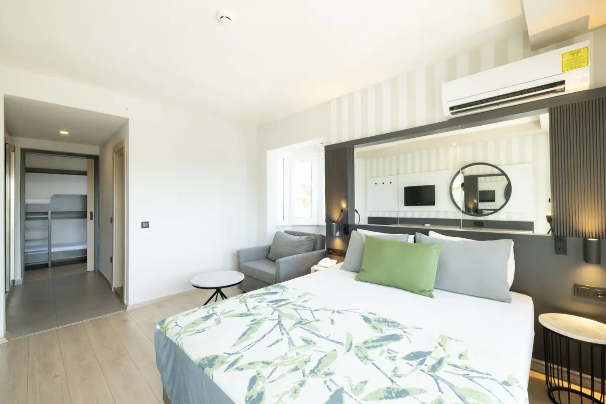 1 adet çift kişilik yatak, 2 adet açılabilir ranza ve 1 adet açılabilir koltuk